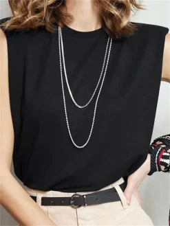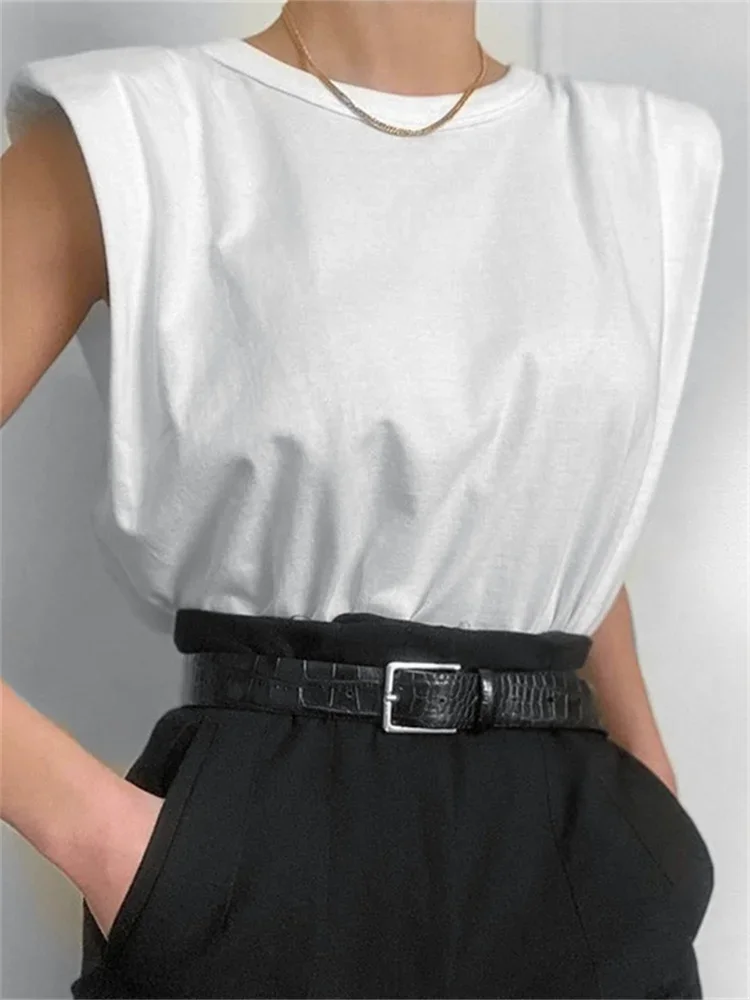 Sleeveless Tops Shoulder Pads T-shirts — Breathable, skin-friendly, soft, comfortable
